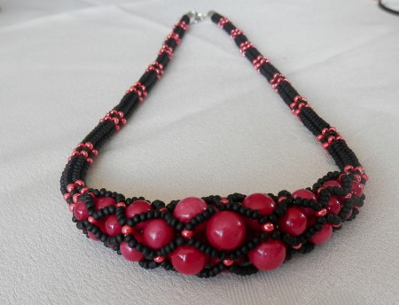 Dutinky z korálků se dají vyrábět téměř všemi technikami šitých šperků - dutinka "potrubní pošta"